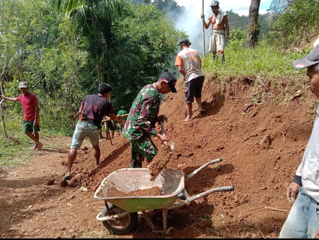 “Kegiatan kerja bakti pelebaran dan perbaikan jalan yang dilakukan babinsa dengan warganya yang merupakan pembinaan teritorial yang diharapkan dapat meningkatkan silaturahim serta kerja sama antara babinsa dengan warganya, di samping kerja bakti ada hal sangat menarik yaitu melakukan komunikasi sosial, ungkap Sertu Suwardi.