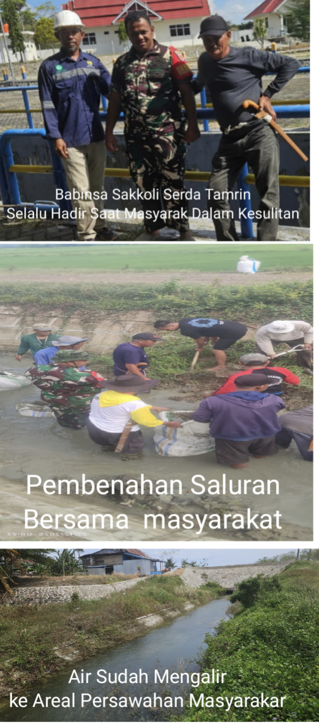 Serda Tamrin bergerak cepat dengan berkoordinasi intensif bersama petugas pintu air Bendungan Paselloreng, guna mengupayakan pembukaan aliran air irigasi yang mengarah ke Desa Sakkoli. Langkah ini dilakukan sebagai upaya penyelamatan lahan pertanian warga yang terancam mengering.