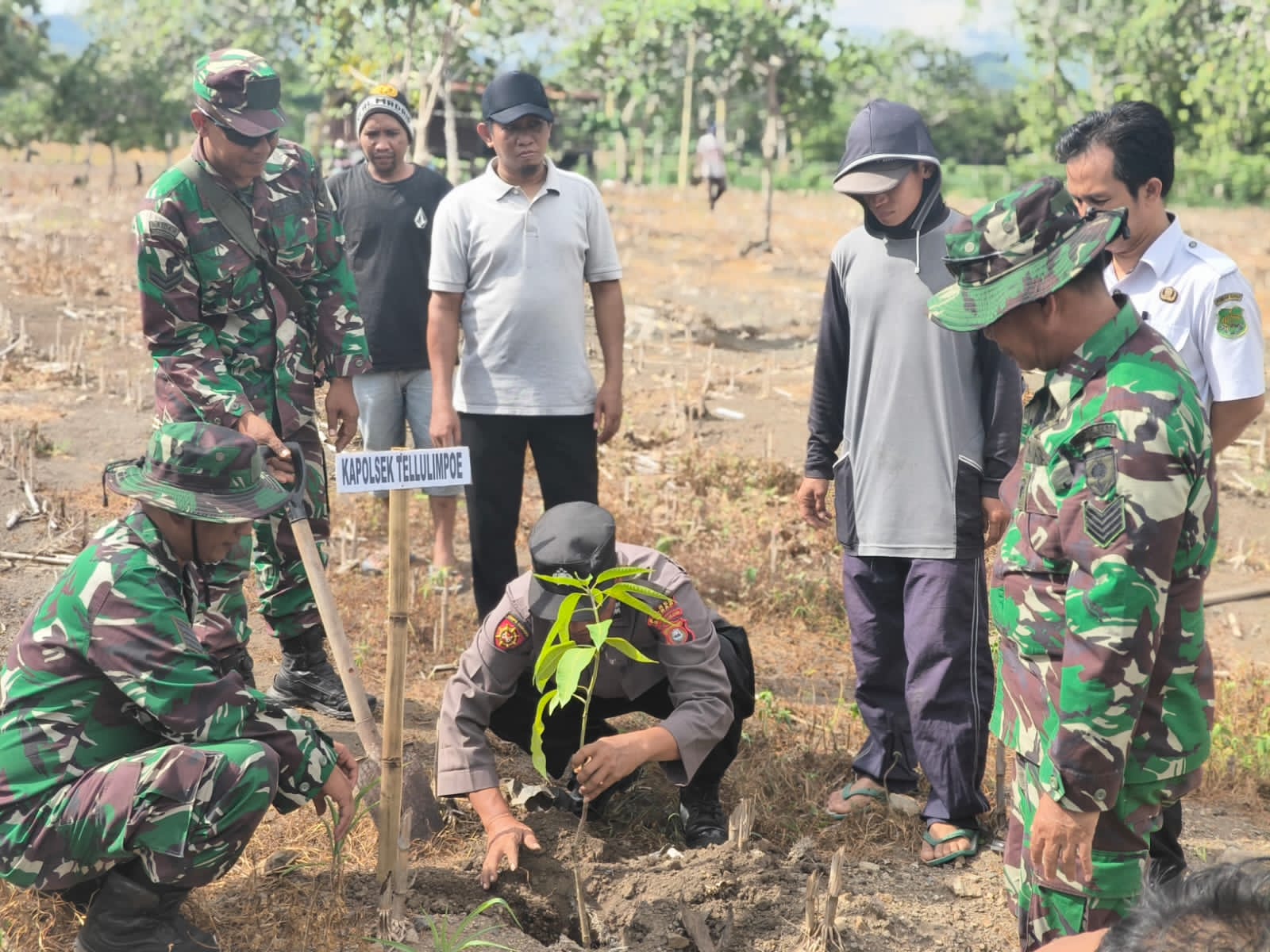 SIDRAP.ONLINE.KASUS.COM — Batu Tuud Koramil 1420-02/Tellu Limpoe, Serma Abdul Halim, bersama dengan Forkopincam wilayah setempat dan masyarakat sekitar, melaksanakan karya bakti berupa penanaman pohon di Jl. Pabrik Batu, Desa Teppo, Kecamatan Tellu Limpoe, Sabtu pagi, 6 Januari 2024.