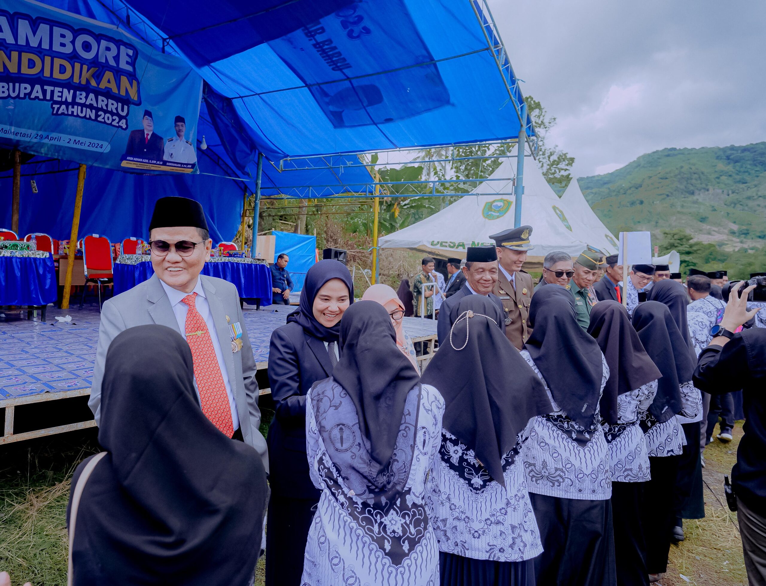 Bupati Barru Ir.H.Suardi Saleh,M.Si didampingi Plt.Ketua TP PKK Kabupaten Barru drg.Hj.Ulfah Nurul Huda Suardi, MARS hadiri Upacara Hari Pendidikan Nasional Tingkat Kabupaten Barru Tahun 2024 yang dilaksanakan di Dusun Mareppang Desa Nepo Kecamatan Mallusetasi, Kamis (02/05/2024)
