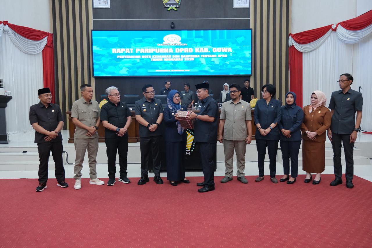 GOWA, ONLINEKASUS.COM — Pemerintah Kabupaten (Pemkab) Gowa menyerahkan Nota Keuangan dan Ranperda APBD Tahun Anggaran 2026 kepada DPRD Kabupaten Gowa di Ruang Rapat Paripurna Kantor DPRD Kabupaten Gowa, Senin (24/11/2025).