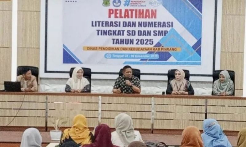 Acara yang berfokus pada peningkatan kompetensi dasar guru dalam mengajar Literasi dan Numerasi diselenggarakan di Aula Dikbud Pinrang, Kamis (4 Desember 2025).