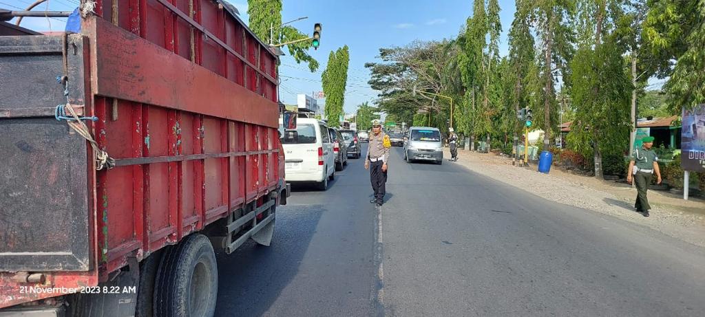 SIDRAP.ONLINE.KASUS COM- Personel Sat Lantas Polres Sidrap jajaran Polda Sulawesi Selatan melakukan pengamanan arus lalu lintas dalam kegiatan kunjungan kerja Danrem 141/Toddopuli di Makodim 1420 Sodrap, Selasa (21/11/2023) pagi.
