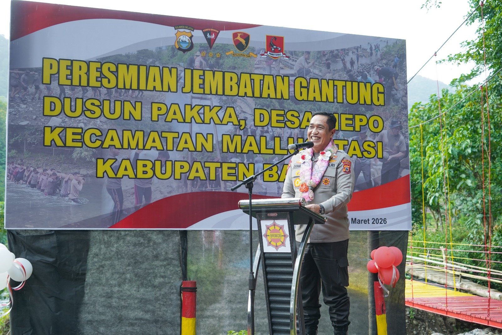 Apresiasi tersebut disampaikan saat peresmian Jembatan Gantung Ginting Praditina yang terletak di Dusun Pakka, Desa Nepo, Kecamatan Mallusetasi, Rabu (4/3/2026).