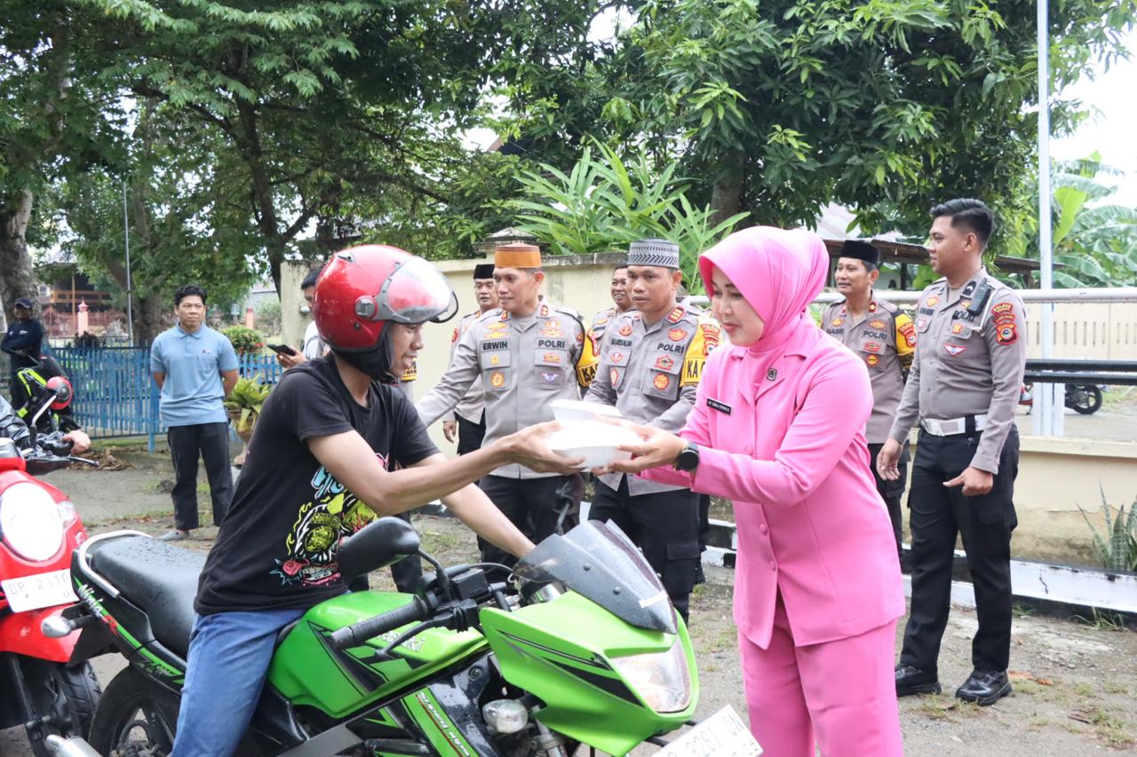 SIDRAP.ONLINE.KASUS.COM – Semarak Ramadhan 1445 Hijriah, Kapolres Sidrap AKBP Erwin Syah, SIK, MH bersama Ketua Bhayangkari Cabang Sidrap Ny Siska Erwin Syah bagi takjil ke masyarakat di Kecamatan Baranti. Senin (25/03/2024)