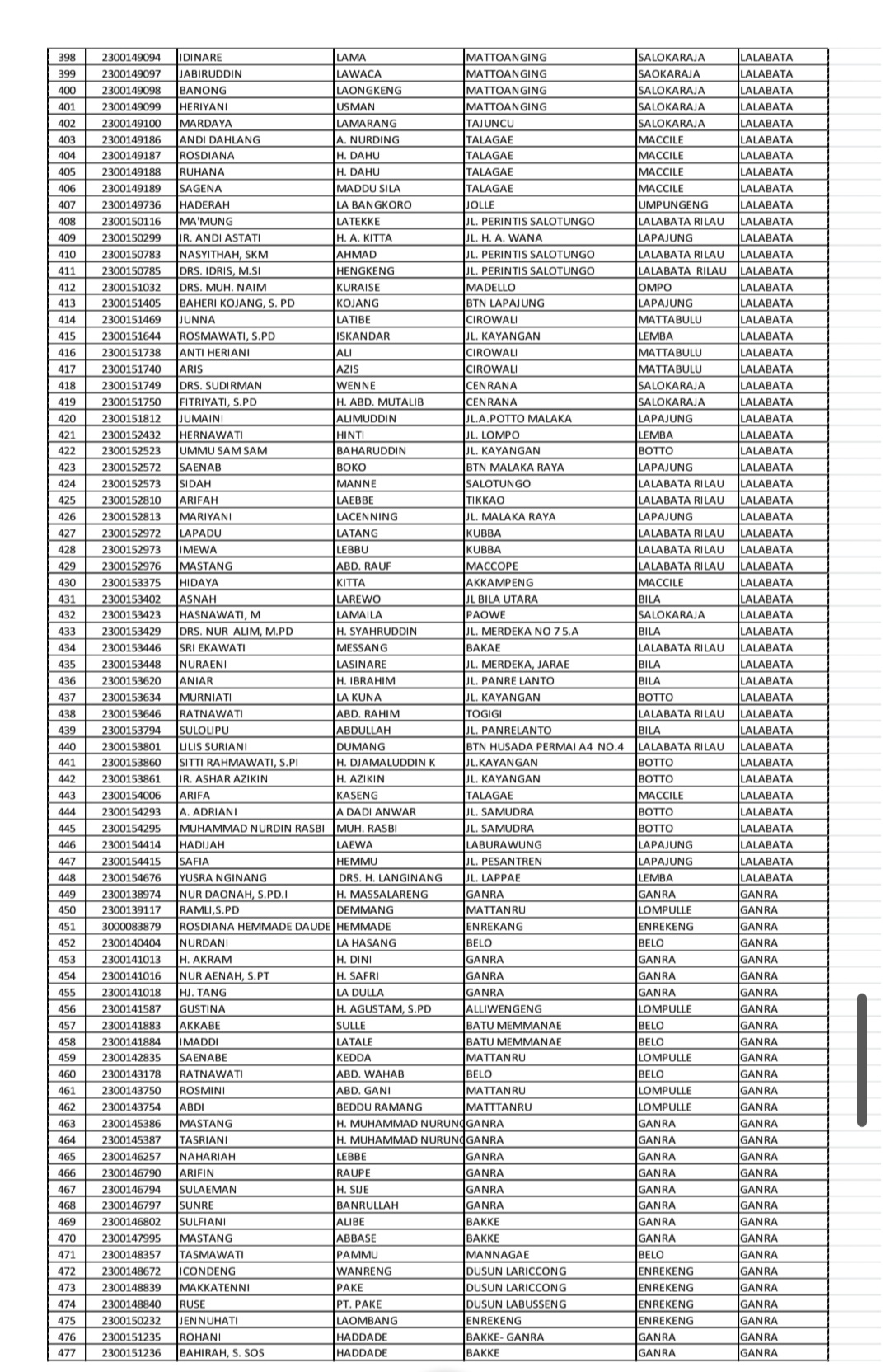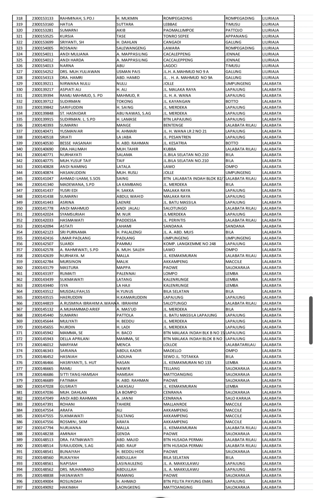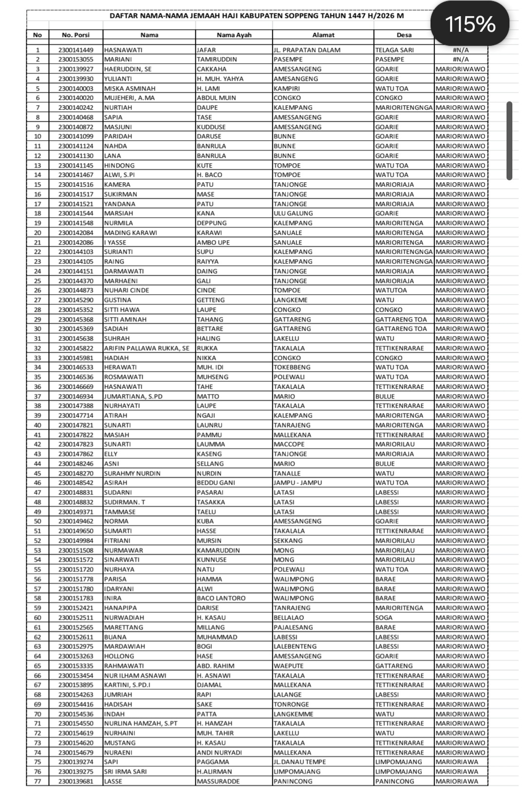 Adapun daftar nama-nama calon jemaah haji Kabupaten Soppeng Tahun 1447 H/2026 M telah dilampirkan bersama surat resmi yang disampaikan kepada seluruh Kepala KUA dan Penyuluh Pendamping Jemaah Haji se-Kabupaten Soppeng.