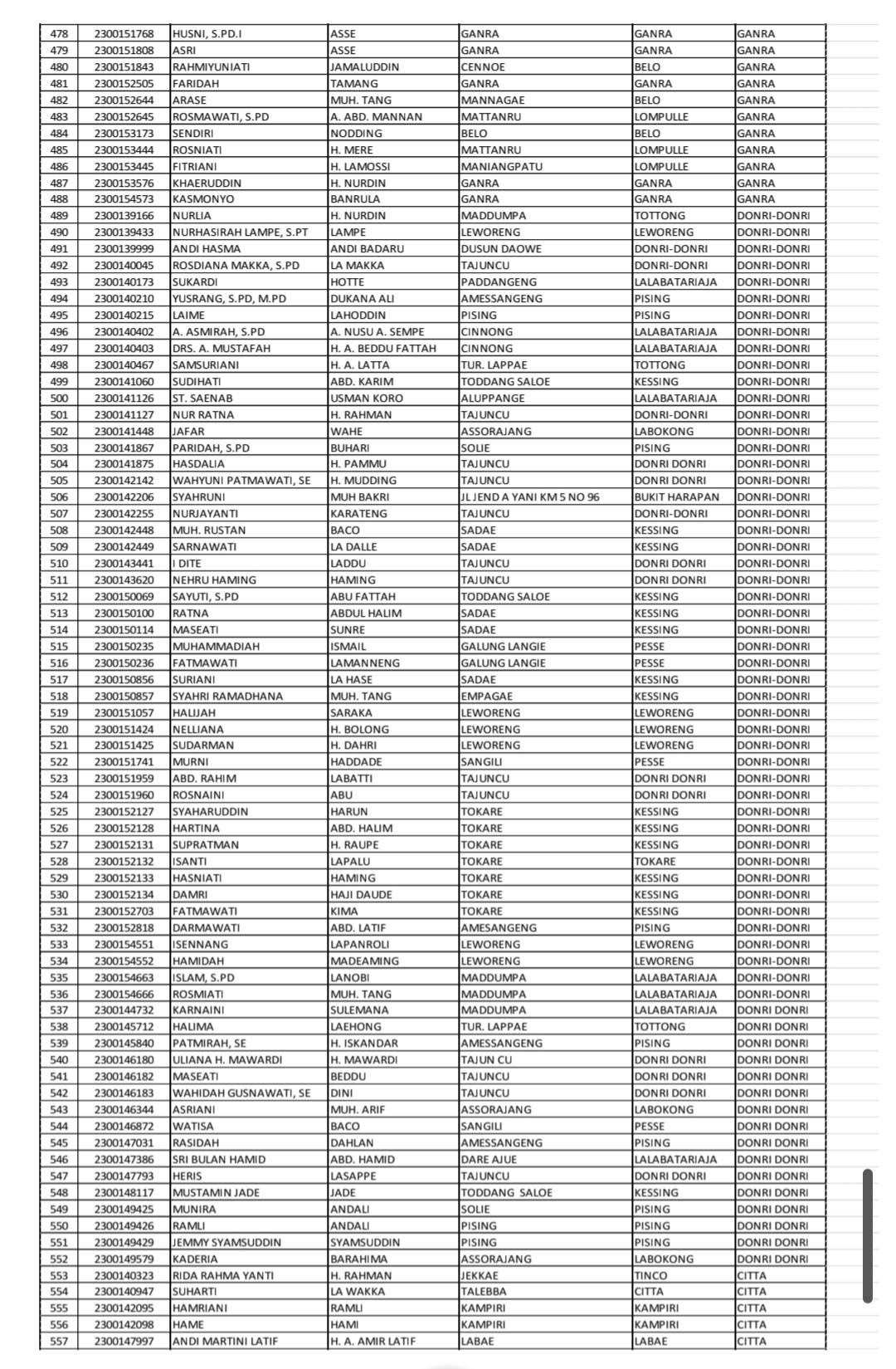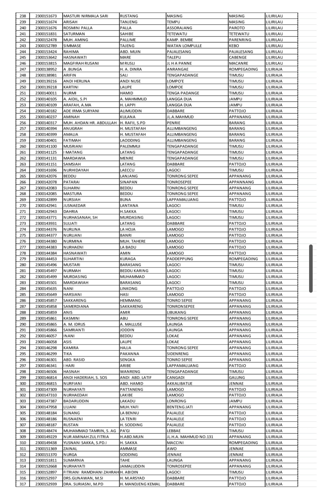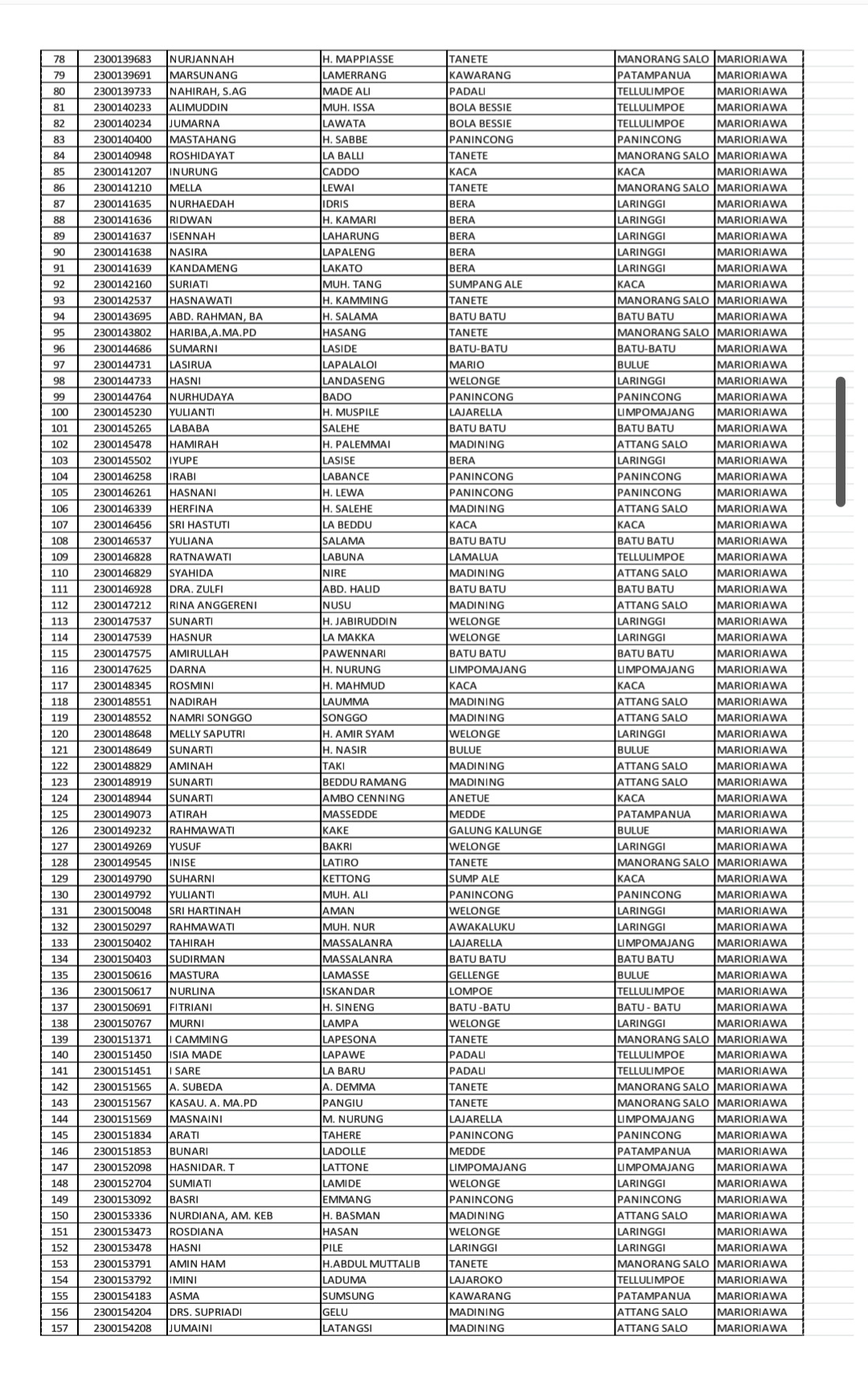 Adapun daftar nama-nama calon jemaah haji Kabupaten Soppeng Tahun 1447 H/2026 M telah dilampirkan bersama surat resmi yang disampaikan kepada seluruh Kepala KUA dan Penyuluh Pendamping Jemaah Haji se-Kabupaten Soppeng.