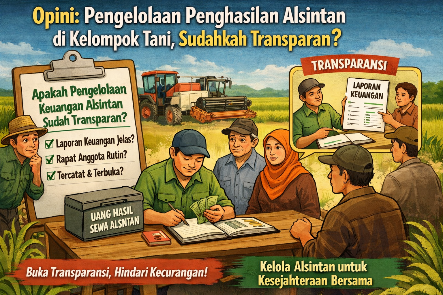 Bantuan alat dan mesin pertanian (alsintan) dari pemerintah sejatinya bertujuan meningkatkan produktivitas petani dan mendorong kemandirian kelompok tani. Namun, dalam praktiknya, muncul pertanyaan yang cukup krusial: bagaimana pengelolaan penghasilan dari pemanfaatan alsintan tersebut? Apakah sudah dikelola secara transparan oleh ketua, bendahara dan diketahui seluruh anggota kelompok?