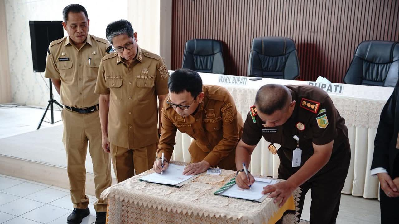 SOPPENG – Pemerintah Kabupaten Soppeng menjalin kerja sama strategis dengan Kejaksaan Negeri Soppeng melalui penandatanganan Nota Kesepahaman (Memorandum of Understanding/MoU) tentang Kerja Sama dan Koordinasi Penanganan Masalah Hukum Bidang Perdata dan Tata Usaha Negara. Kegiatan ini berlangsung di Aula Kantor Gabungan Dinas Kabupaten Soppeng, Senin (23/02/2026).