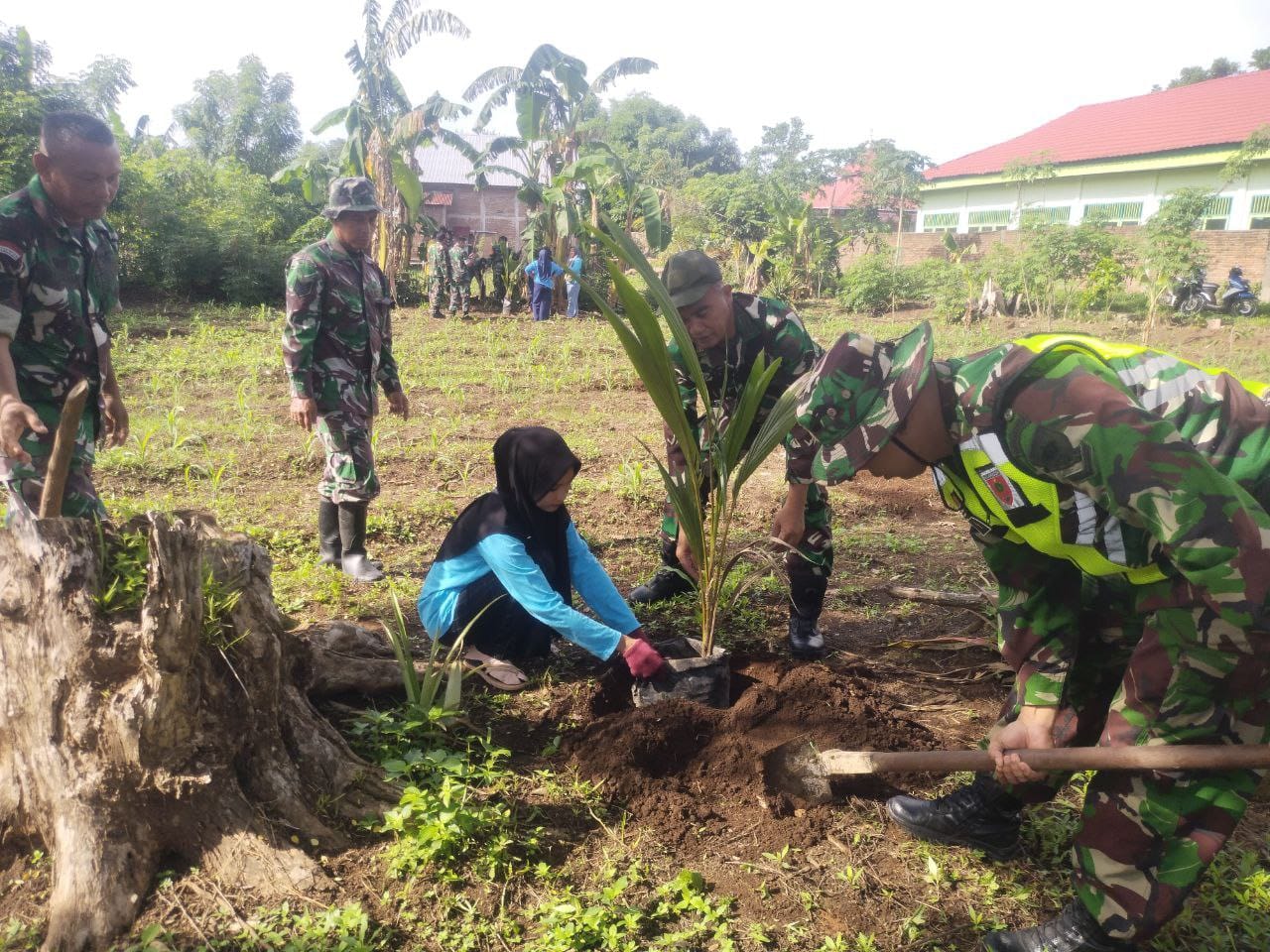 TAKALAR, ONLINE KASUS.COM – Personel Koramil 1426-01/Polut Kodim 1426/Takalar,7 melaksanakan kegiatan kerja bakti penanaman pohon mangga, kelapa dan durian guna menghijaukan lingkungan dan meminimalisir terjadinya banjir pada saat musim hujan yang berlokasi di Desa Massamaturu Kecamatan Polongbangkeng Utara Kabupaten Takalar. Kamis (04/1/2024)