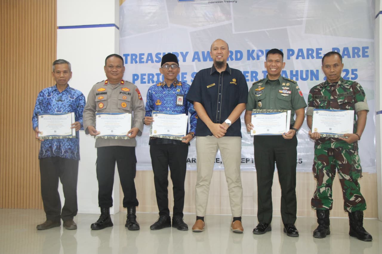 Kapolres Barru yang diwakili Wakapolres Kompol La Makkanenneng, S.E menerima piagam yang diserahkan langsung oleh Kepala KPPN Parepare Ferryal Resque, di Aula KPPN. Rabu (17/09/2025).