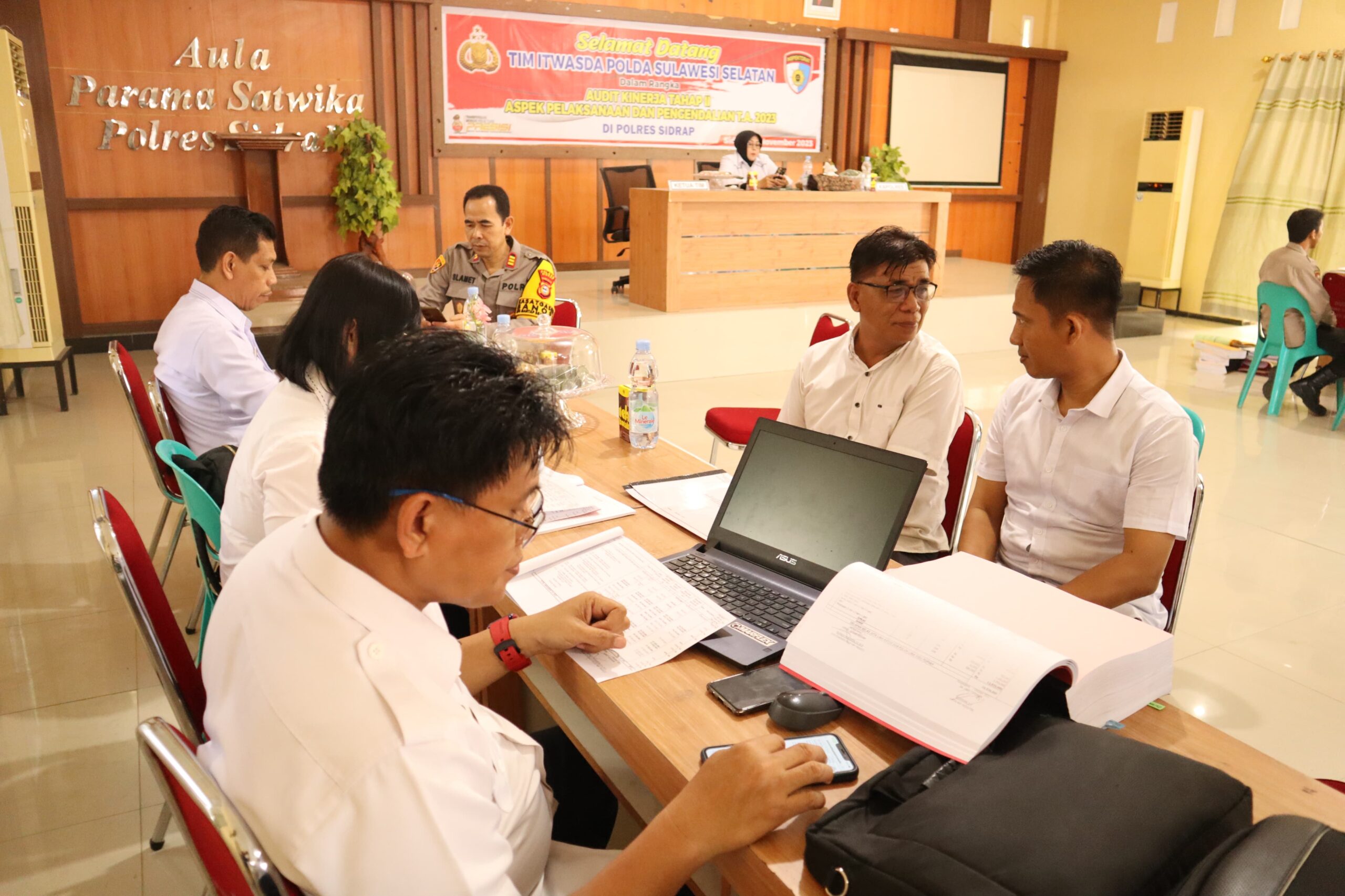 SIDRAP.ONLINE.KASUS.COM – Polres Sidrap terima kunjungan Tim Itwasda Polda Sulsel dalam rangka pelaksanaan kegiatan Audit Kinerja Tahap II Aspek Pelaksanaan dan Pengendalian T. A 2023 yang berlangsung di Aula Parama Satwika Polres Sidrap. Jumat (10/11/2023) pagi.
