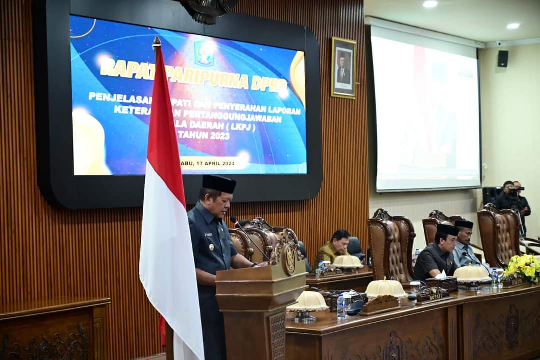 Dalam rapat tersebut, Bupati Soppeng, H.A. Kaswadi Razak, SE, memberikan penjelasan terkait Laporan Keterangan Pertanggungjawaban (LKPJ) Kepala Daerah untuk tahun 2023. Setelah itu, dilakukan penyerahan LKPJ oleh Bupati kepada Ketua DPRD.