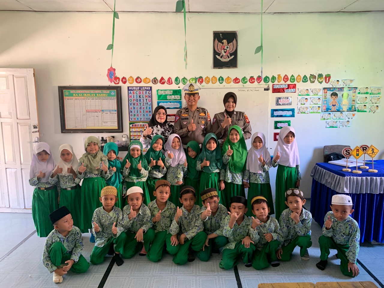 Barru.Online.Kasus.Com- Satuan Lalu Lintas Polres Barru melaksanakan sosialisasi ketertiban dan keselamatan berlalulintas kepada siswa Raodatul Athfal / Taman Kanak Kanak Al Ikhlas Kabupaten Barru, Senin (20/05/2024).
