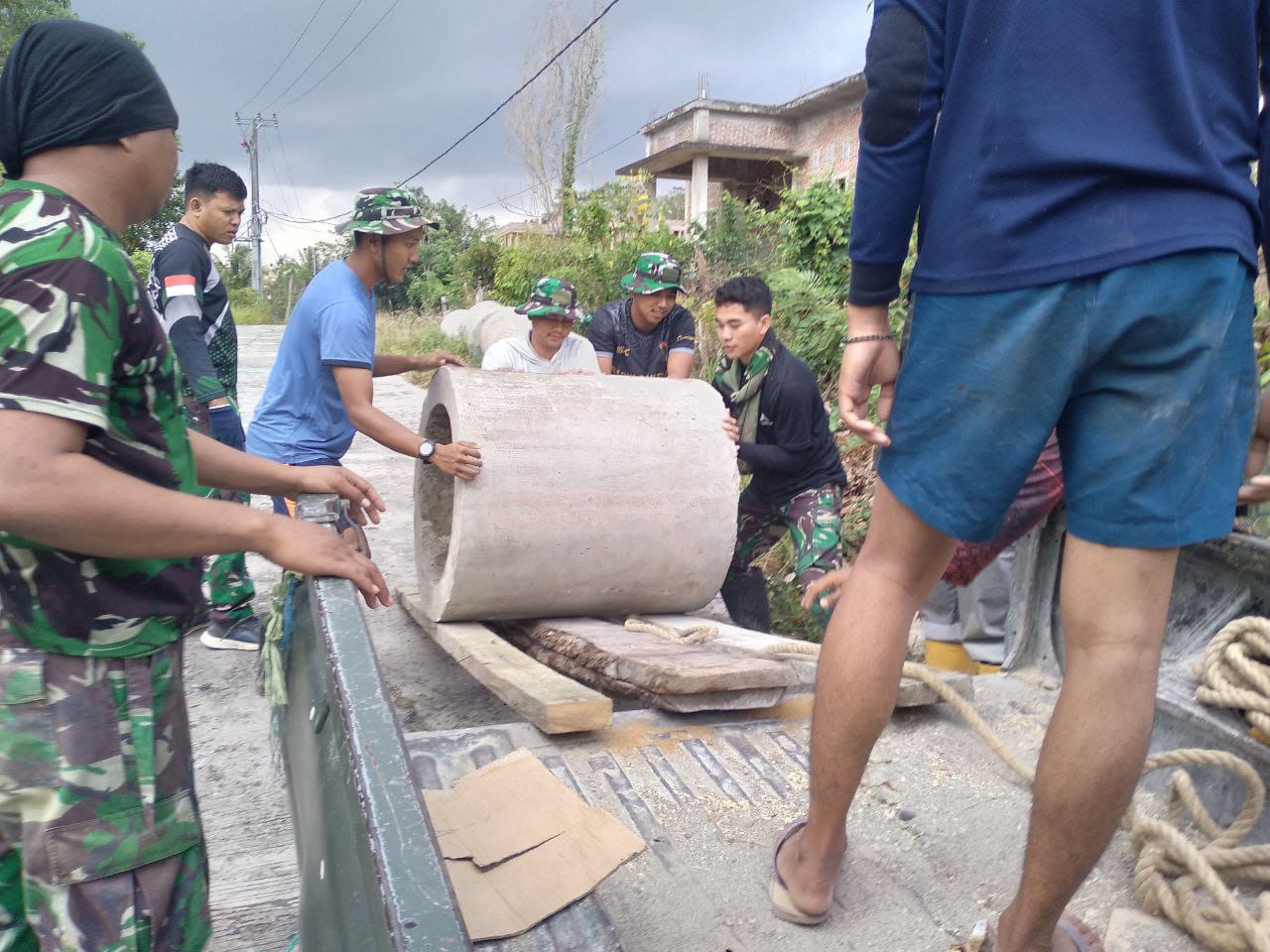 Dalam upaya yang mencerminkan semangat gotong-royong dan kerja sama, anggota Satgas TMMD dengan sigap mendistribusikan gorong-gorong ke lokasi proyek. Mereka bekerja keras untuk memastikan bahwa infrastruktur yang dibutuhkan tersedia dan siap digunakan untuk memajukan desa.