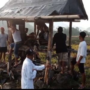 ” jadi ada 5 orang, 1 orang sebelum hujan pergi mengambil jerami, 1 orang kasih pindah gabah. Yang 3 orang tinggal di bale-bale,” jelasnya