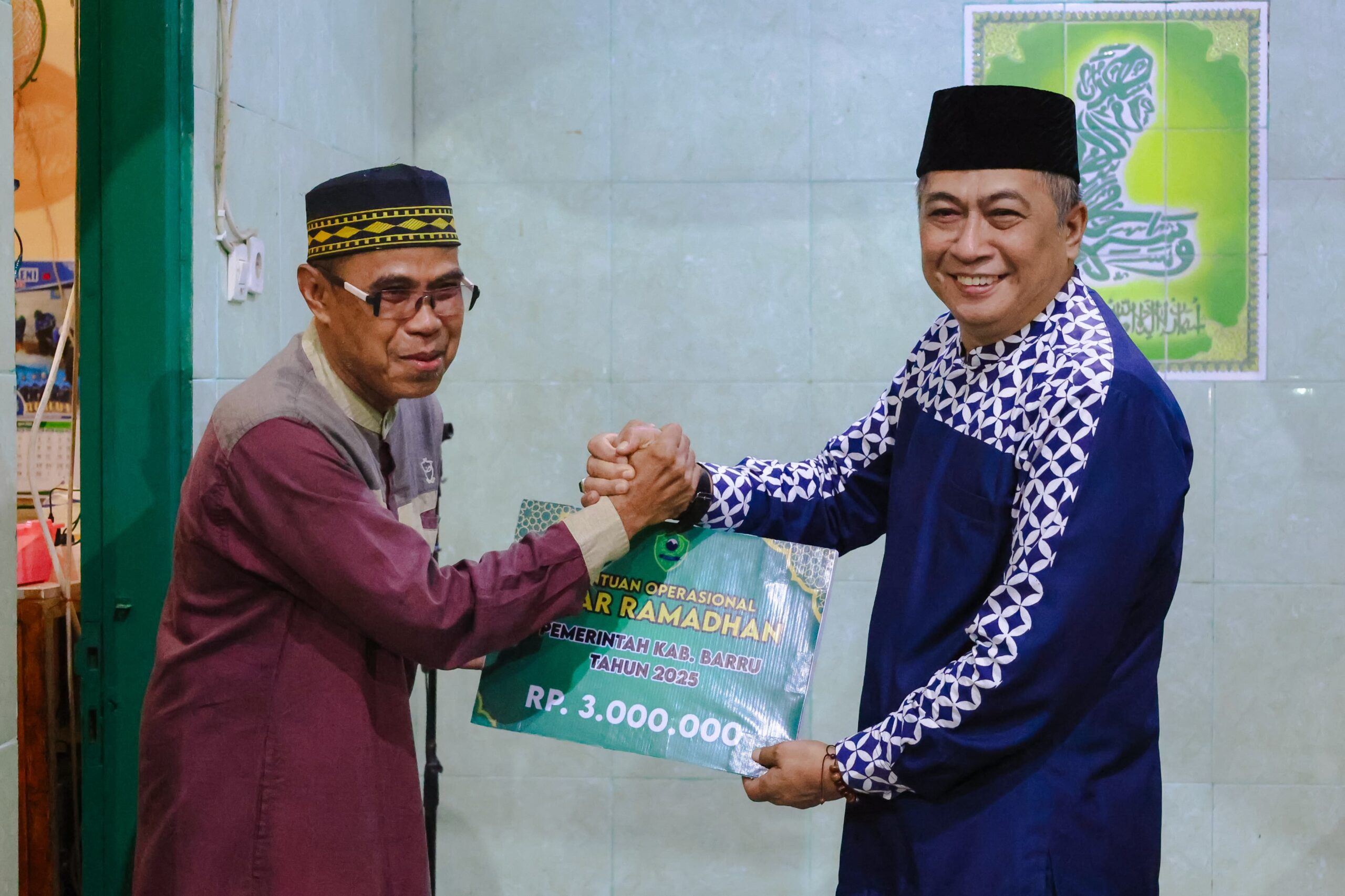 Wabup Barru Abustan Serahkan Bantuan Syiar Ramadhan ke Panitia Pembangunan Masjid Babussalam