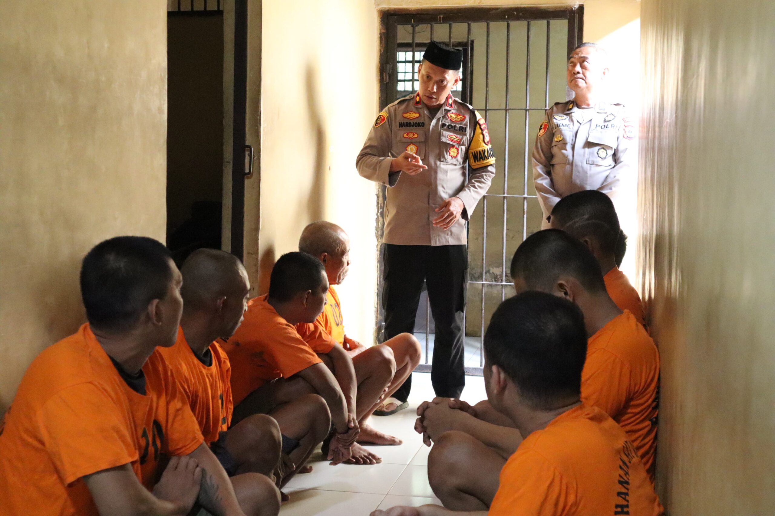 Dalam momen berharga ini, Wakapolres mengambil kesempatan untuk berbicara langsung dengan para tahanan. Dengan suara tegas dan penuh kepedulian, beliau memberikan pesan penting kepada para tahanan yang sedang menjalani ujian hidup mereka di balik jeruji besi.